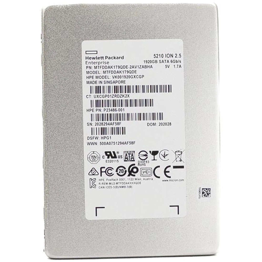 Refurbished | Micron MTFDDAK1T9QDE-2AV1ZABHA HPE OEM 1.92TB SATA-6Gbps 2.5" 5210 Ion Series Solid State Drive