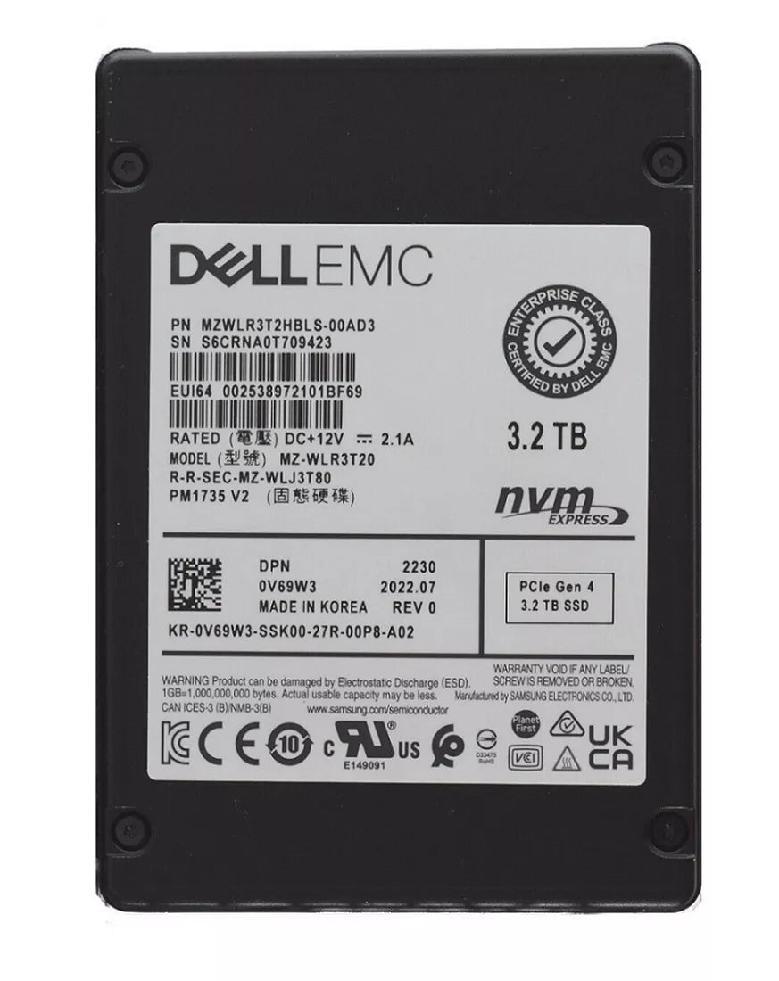 製品説明: SAMSUNG Pm1735 MZWLR3T2HBLS-00AD3 - ソリッド ステート ドライブ - 3.2 Tb - PCI Express 4.0 X8 (nvme)