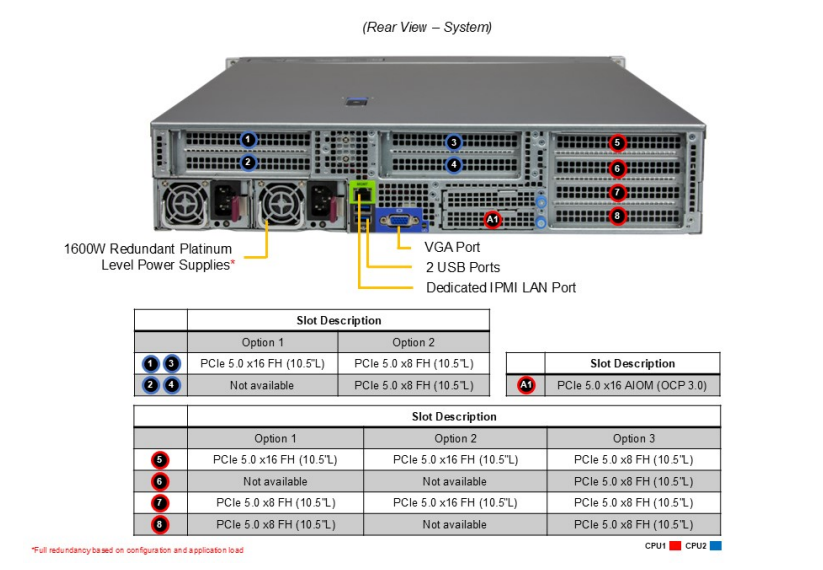• Optional PCIe slot configurations up to 8 PCIe 5.0 x8 or 4 PCIe 5.0 x16 slots or mix and match