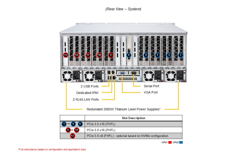 Power Supply: 4x 2000W Redundant Titanium Level (96%) power supplies