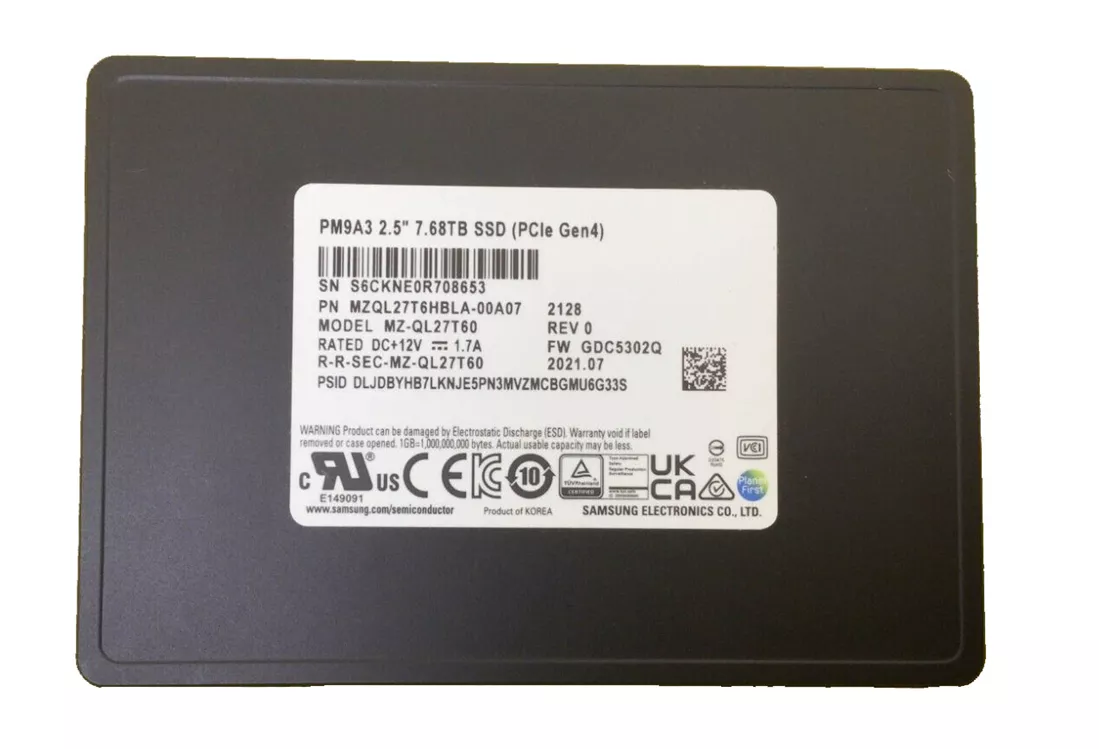 產品名稱:Pm9a3 7.68TB U.2 Pcie 4.0 X4 資料中心固態硬碟