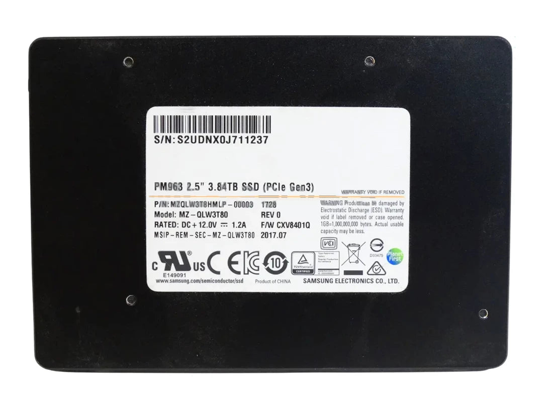 三星 Pm963 3.84TB Pcie Gen3 X4 Nvme 2.5 吋企業級固態硬碟