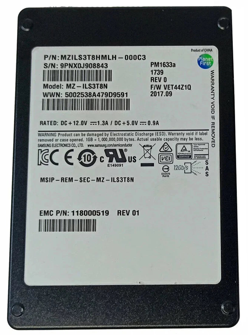 產品描述:三星 Pm1633a MZ-ILS3T8N - 固態硬碟 - 3.84 Tb - Sas 12gb/s